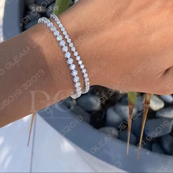 5 Carat Lab Grown Diamond Tennis Bracelet Unique Classic Style Solid Gold for Parties